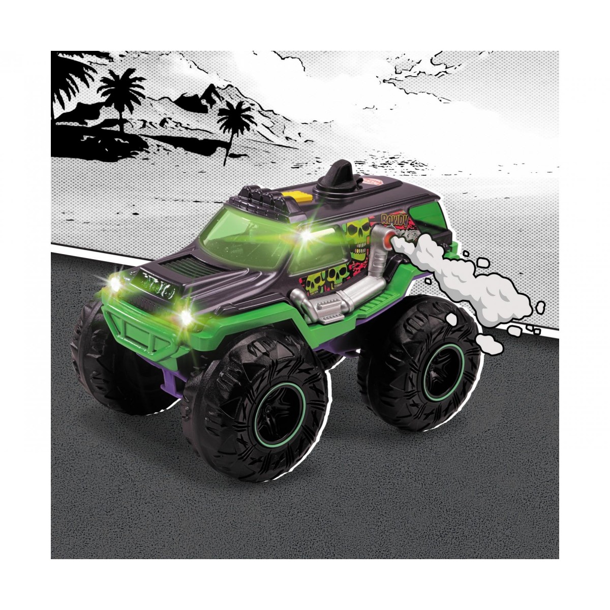 Светещо бъги с големи гуми, което може да премине през всякакъв терен.