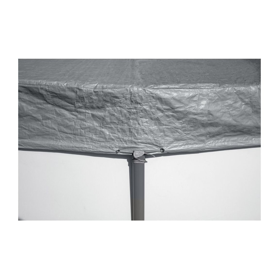 Вятъроустойчиво зимно покривало от подсилени материали, подходящ за кръгли басейни с тръбна конструкция.