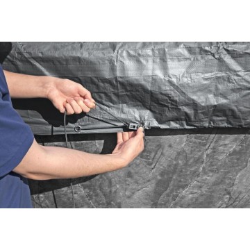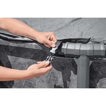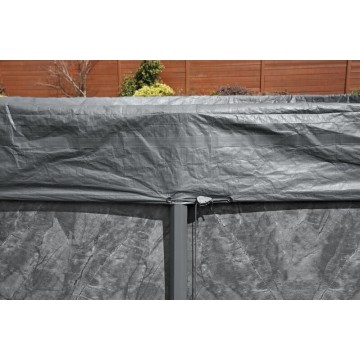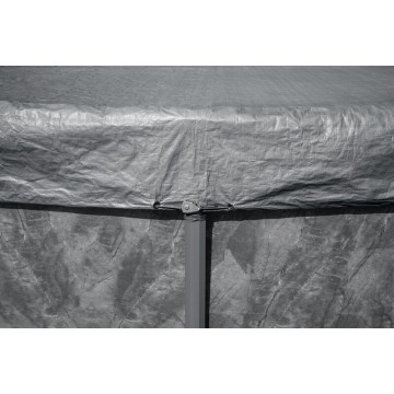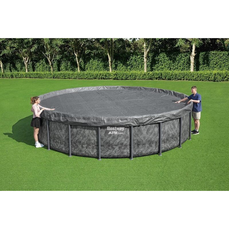 Вятъроустойчиво зимно покривало от подсилени материали, подходящ за кръгли басейни с тръбна конструкция.