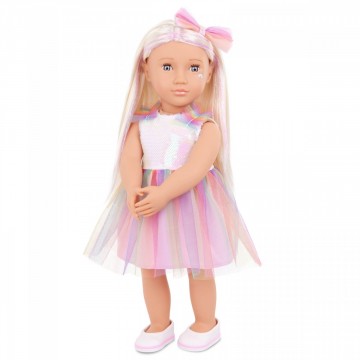 Красивата кукла Ирис в розова рокля и панделка за коса.