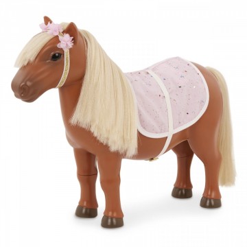Комплект пони с аксесоари за кукли, готово за езда и приключения.