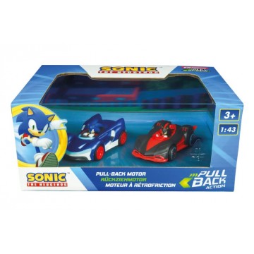 Комплект колички с Pull back задвижване на любимите герои Соник и Шадоу.