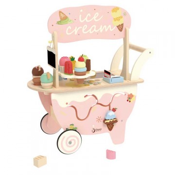 Превърнете се в любимия продавач на града с дървена количка за сладолед, подходяща за ролеви игри.