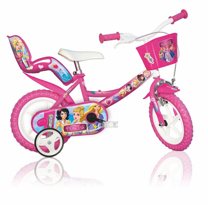 Детски велосипед с помощни гуми, стилен дизайн, задна седалка за кукли и италианско качество.
