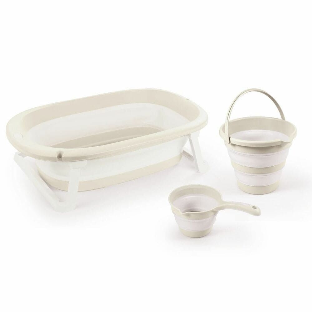 Комплект сгъваеми аксесоари за вана, които са компактни за съхранение и удобни за употреба.