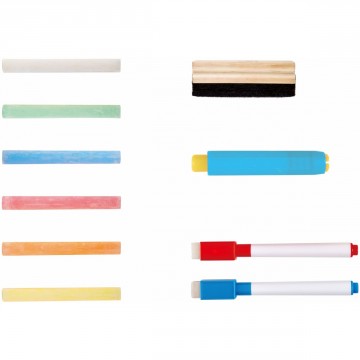 - Комплектът съдържа - дъска, тебешири, 2 маркера и гъба;
