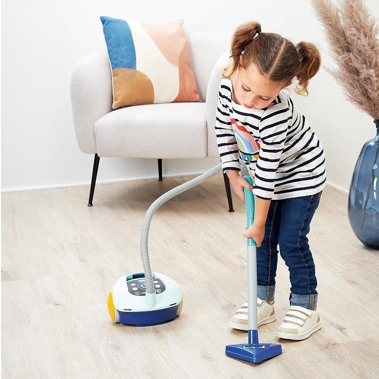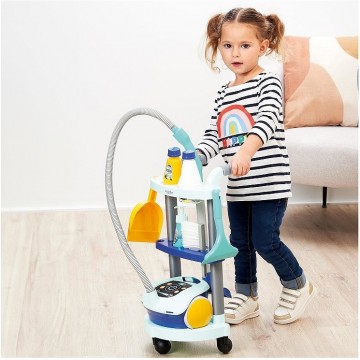 Количка за почистване с детска прахосмукачка, с който малките ще се включат в домашните задължения.