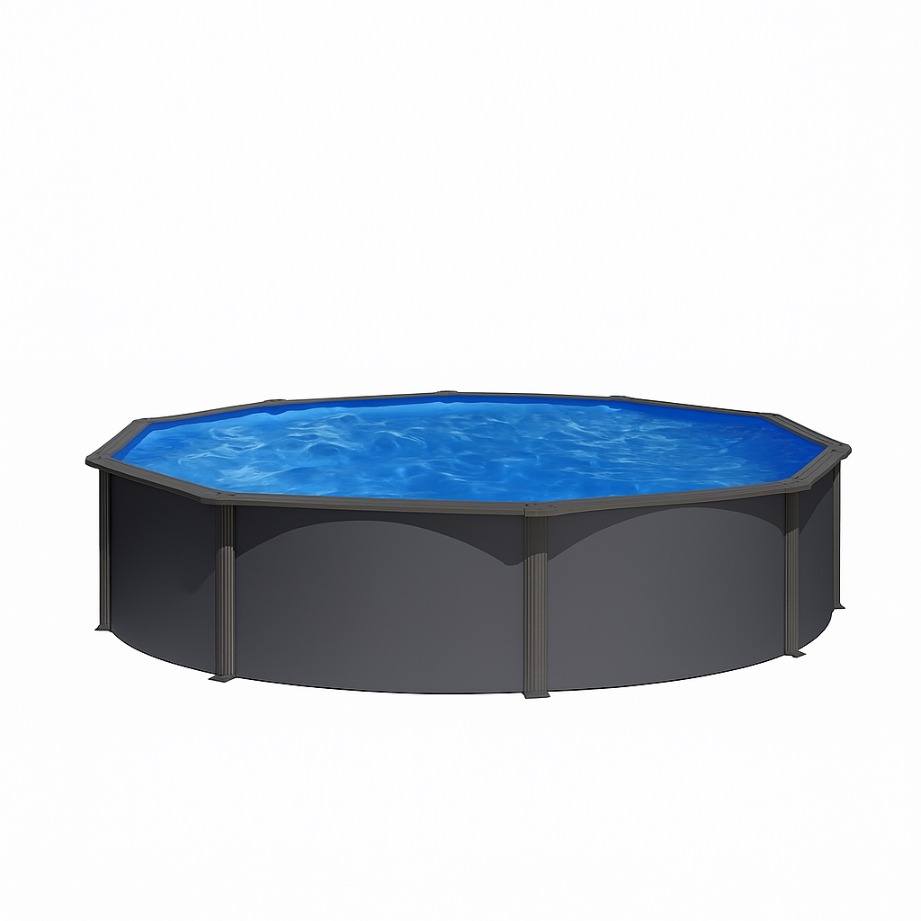 Сглобяем басейн от серията Anthracite, изработена в тъмната цветова гама, която спомага, както за стилния дизайн, така и за бързо затопляне на водата и поддържането на висока температура. Басейнът е изработен от стоманена конструкция с антикорозионна защита, която гарантира неговата надежедност и дълготраен живот.