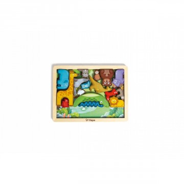 Дървен пъзел с животни, с който ще научите малките на нови видове животни.