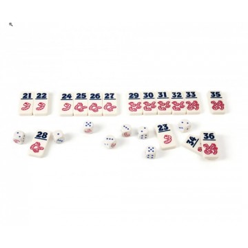 - Комплектът съдържа: домино плочки с цифри и червеи, 8 зарчета;