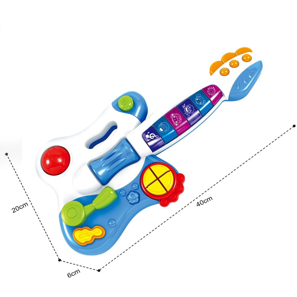 Електрическа китара, създадена за игра от най-малките с цветен дизайн и забавни звуци.