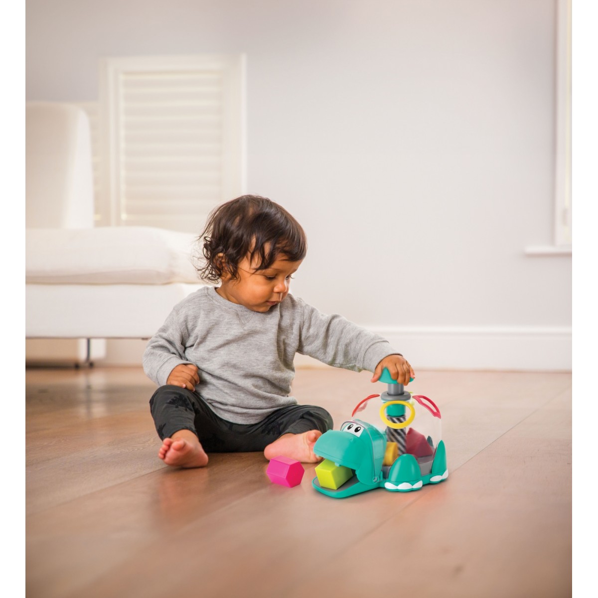 Интерактивна играчка сортер за форми във формата на хипопотам.