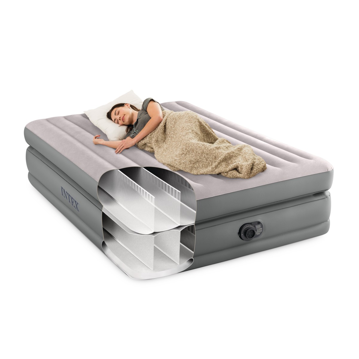 Надуваем матрак, подходящ за посрещане на неочаквани гости. Двуслойна структура и кадифена повърхност допринасят за комфортния сън и удобството.