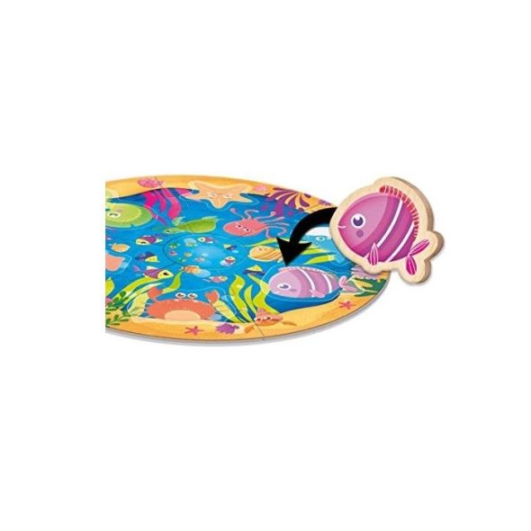 - Включени голям кръгъл пъзел и дървени животни за сортиране;