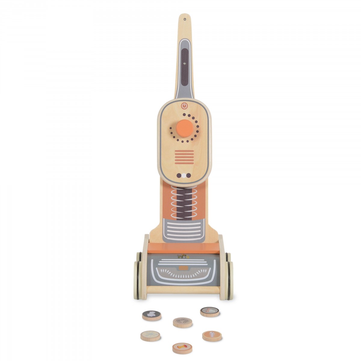 Детска дървена прахосмукачка.