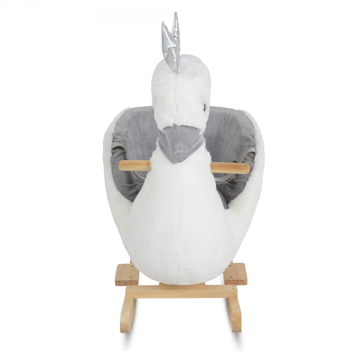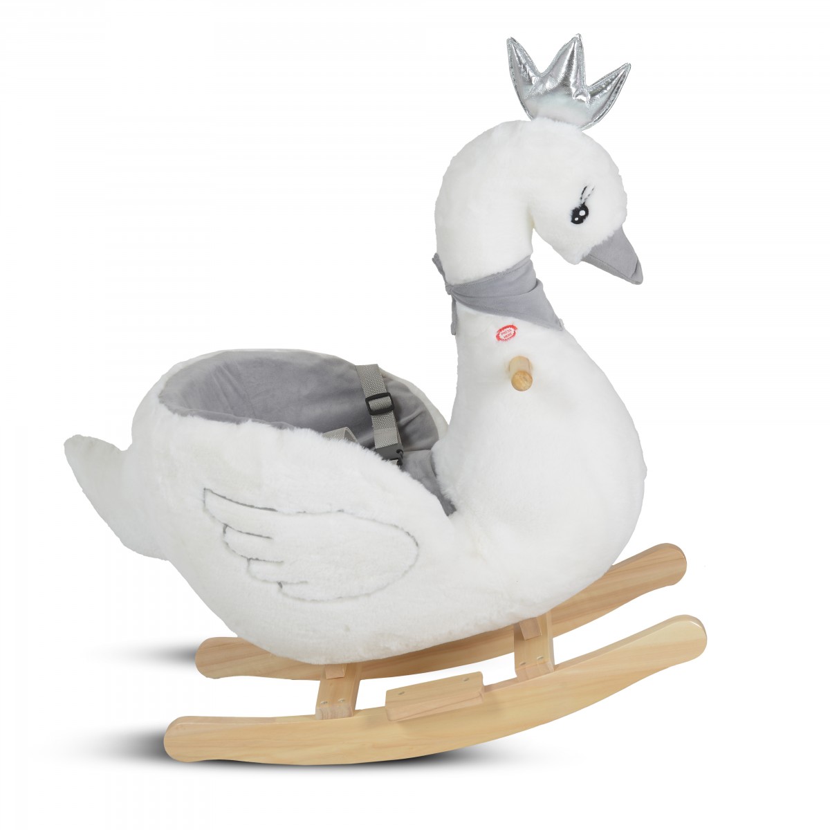 - Мек, плюшен дизайн с дървена люлееща се основа;