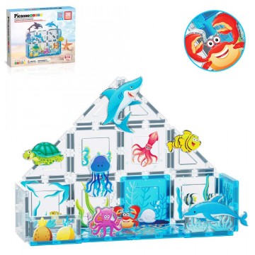 Магнитен конструктор за писта за топчета в различни цветове и форми.