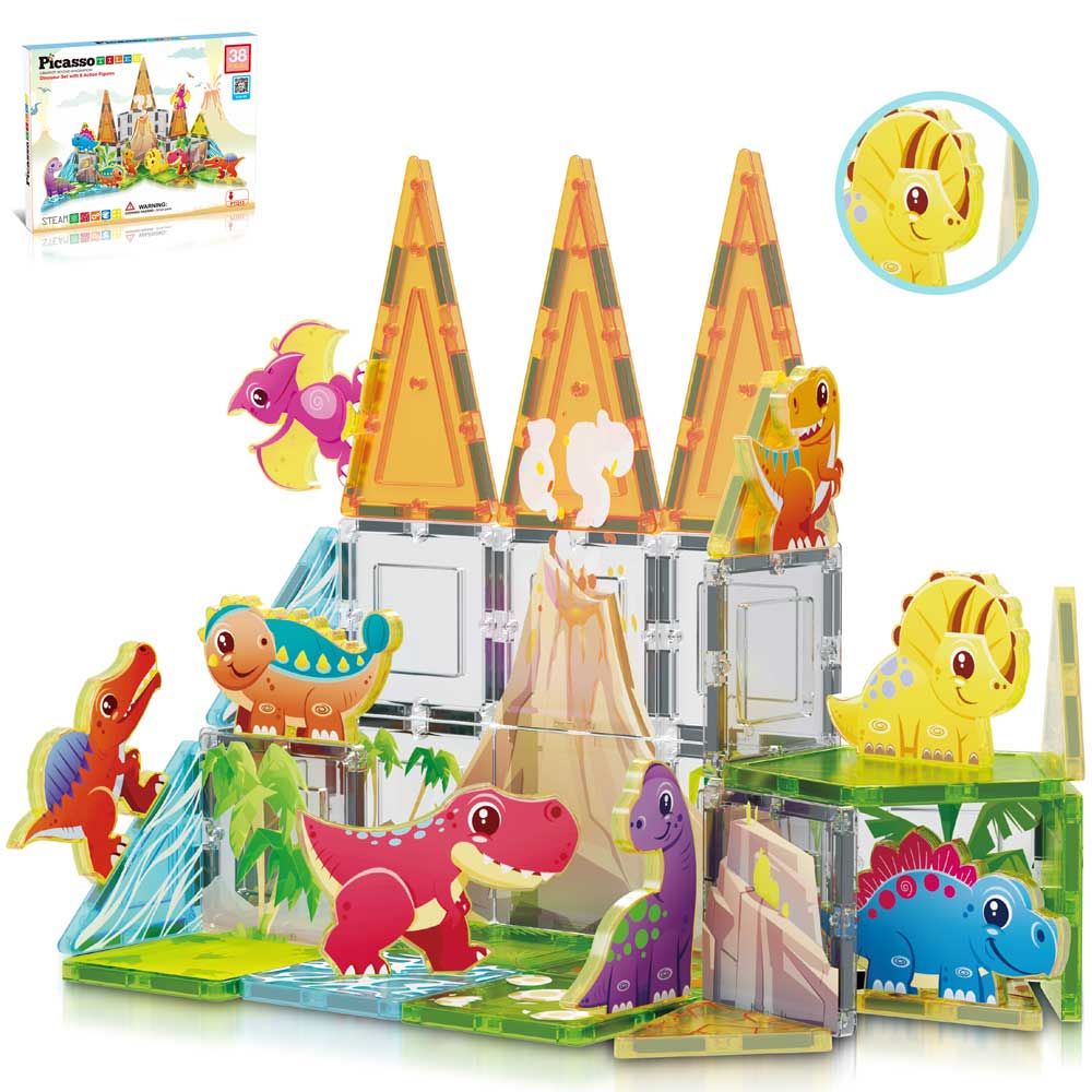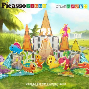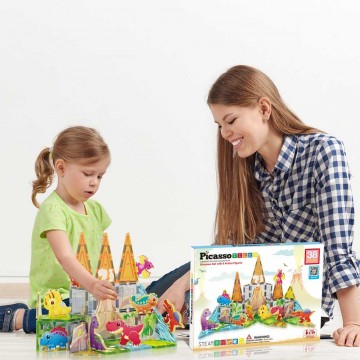 Магнитен конструктор за писта за топчета в различни цветове и форми.