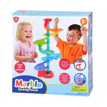 Писта за топчета с цветен дизайн и различни нива, която ще зарадва всеки малчуган.