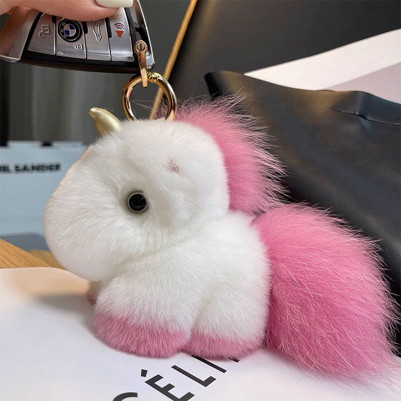Сладък и мек ключодържател Еднорог с козина от естествен косъм.