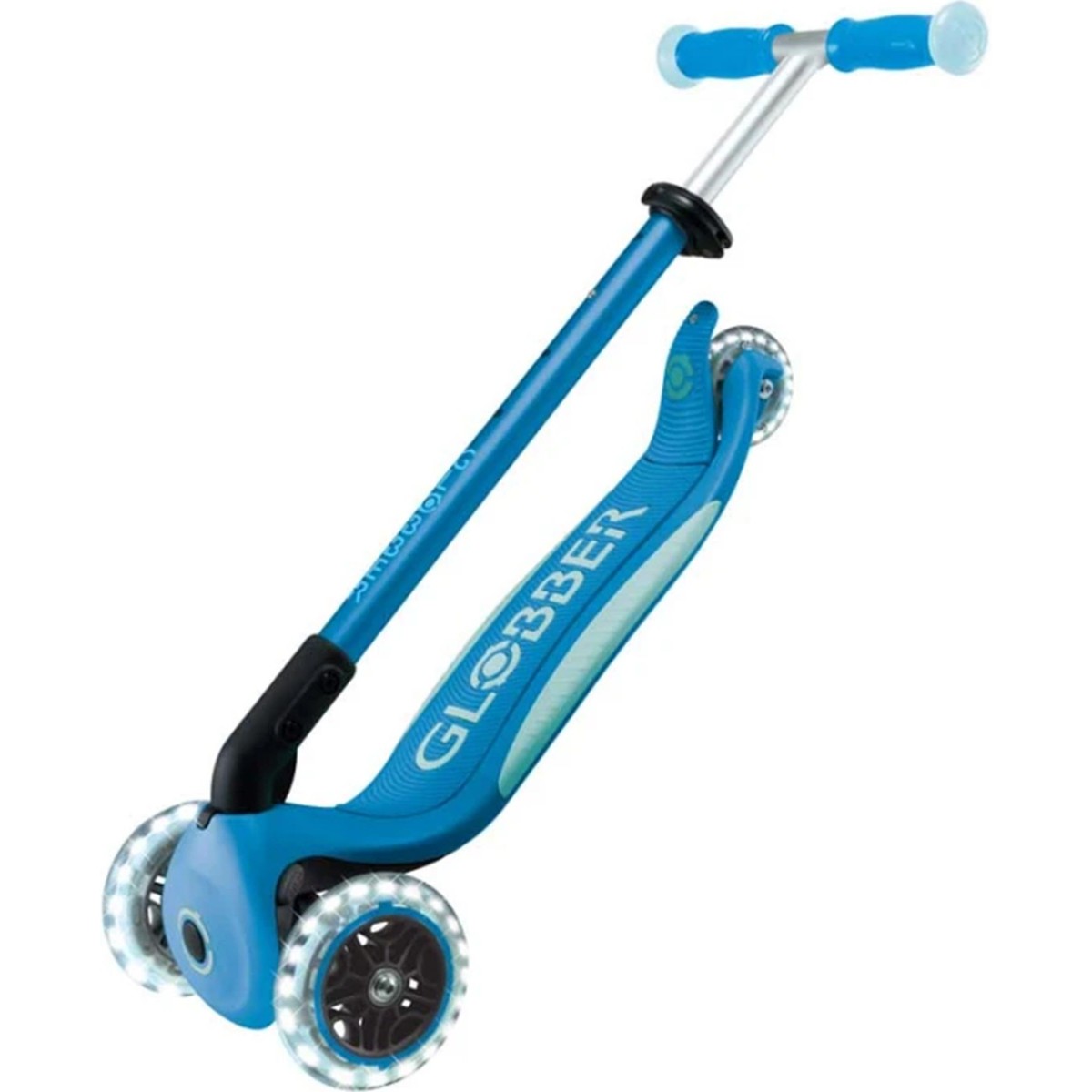 Детска тротинетка със светещи колела и сгъваем дизайн.
