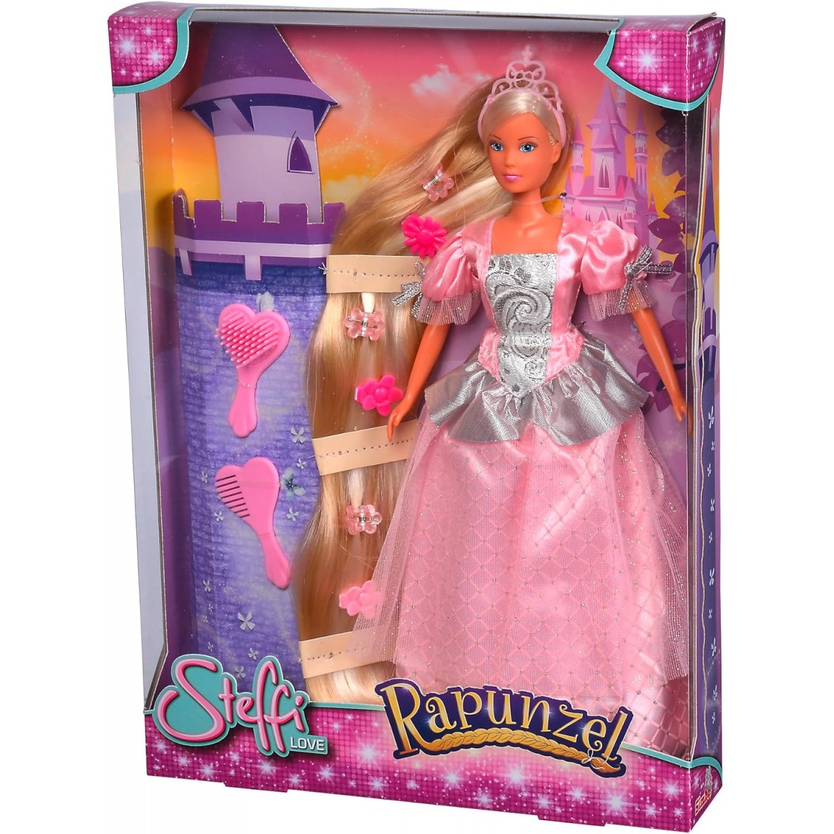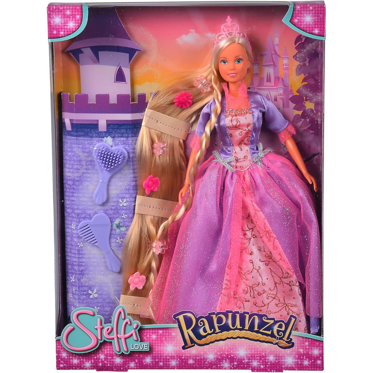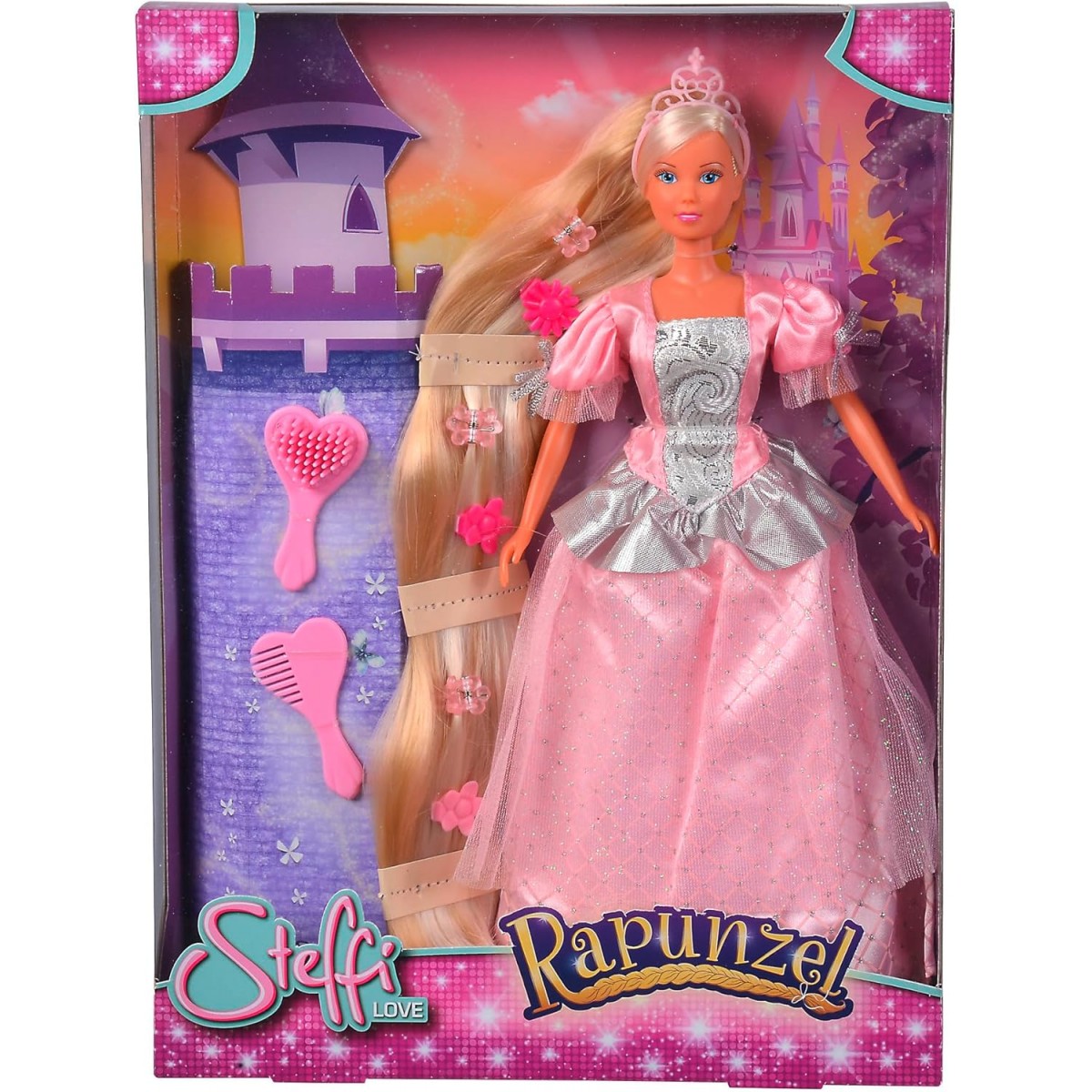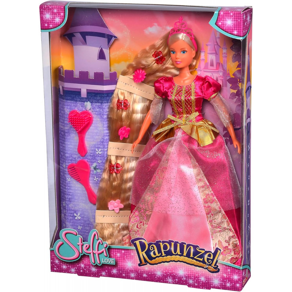 Красивата Рапунцел с дълга коса и бална рокля, готова за бляскави събития.