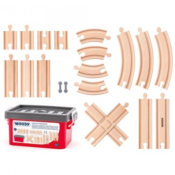 - Съдържа 20 части за съставянето на дървени релси за влакче;